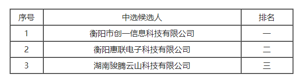 衡粮集团OA协同办公系统采购(比选编号BX-013)于2024年8月19日上午9点30分(北京时间)进行了比选活动。本项目采用“综合评分法”,经评审小组综合评审,现将中选候选人排名结果公示如下: